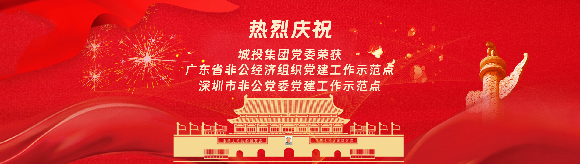 在上級黨委的正確領導下,在城投集團的大力支持下,集團黨委緊緊圍繞企業(yè)發(fā)展戰(zhàn)略,將黨建引領核心貫穿始終,以五心工程(即思政建設核心工程、經(jīng)營發(fā)展中心工程、企業(yè)文化向心工程、黨建品牌匠心工程、服務基層愛心工程)為抓手,大膽探索,勇于突破和創(chuàng)新,不斷形成城投黨建特色,有效輸出城投實踐經(jīng)驗,充分發(fā)揮紅色引擎作用,先后獲得深圳市非公黨委黨建工作示范點深圳市兩新組織黨建工作示范點深圳市文明單位深圳市先進基層黨組織廣東省非公有制經(jīng)濟領域黨建工作示范點等榮譽稱號。
